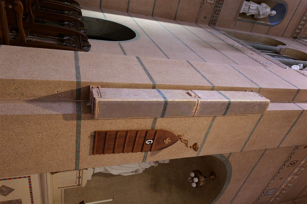 Mounted discretely and finished to blend seamlessly into the architecture—each enclosure custom hand-painted by artist Vanessa Bright—the system is effectively invisible to congregants.