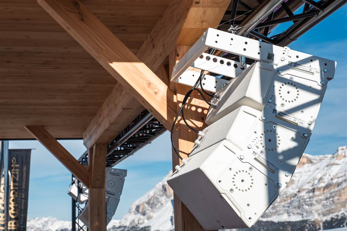 “After eight years overseeing Moritzino’s artistic direction and sound, I wanted a system capable of bringing identity and consistency to all areas. Choosing a single-brand solution was natural: we needed uniform coverage for the three main areas, plus a fourth dedicated to private events. I’ve seen firsthand that dBTechnologies is not just a brand, but a team of professionals focused on the client — a major strength for the success of the project. With dBTechnologies, we were able to delve deeply into the design, analyzing each area through dedicated acoustic measurements and calibrating the system based on our real needs. This allowed us to determine the most suitable coverage solutions for our environment, which is anything but simple. What struck me most about the finished project is the union between the array’s aesthetics and the sound quality. The white finish recalls the surrounding snow and blends perfectly with the landscape, creating a chromatic contrast with other outdoor elements that reflects the venue’s vibrant spirit. And then there’s the punch. Some systems sound loud, others sound clean — but very few give you that punch in the stomach, that physical impact that makes the music feel alive. Here, I have it. And that’s what truly makes the difference.”